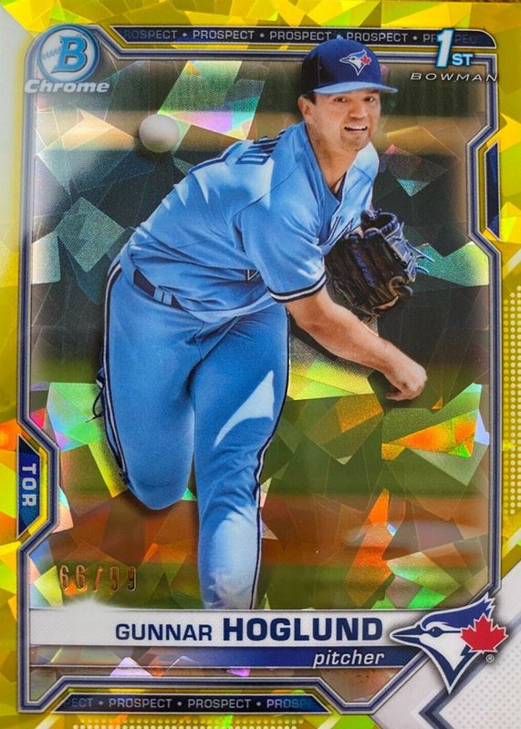 Gunnar Hoglund's Baseball cards are available in at least 7 sets. Gunnar Hoglund's biggest 7-day price movers are 2021 Bowman Draft Sapphire Edition #BDC-78 Chrome - Yellow /99 (1st), 2021 Bowman Draft Sapphire Edition #BDC-78 Chrome - Gold /15 (1st), and 2021 Bowman Draft Sapphire Edition #BDC-78 Chrome - Purple /10 (1st).