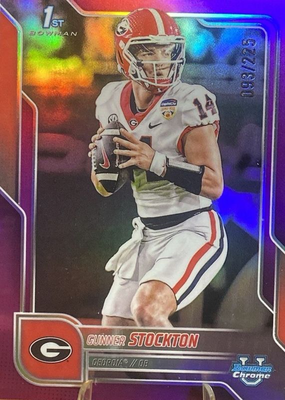 The Gunner Stockton 2025 Bowman Chrome University #131 Fuchsia Refractor /225 (1st) card in Raw condition has not changed in price in the last 30 days and was last sold for $8.99 .