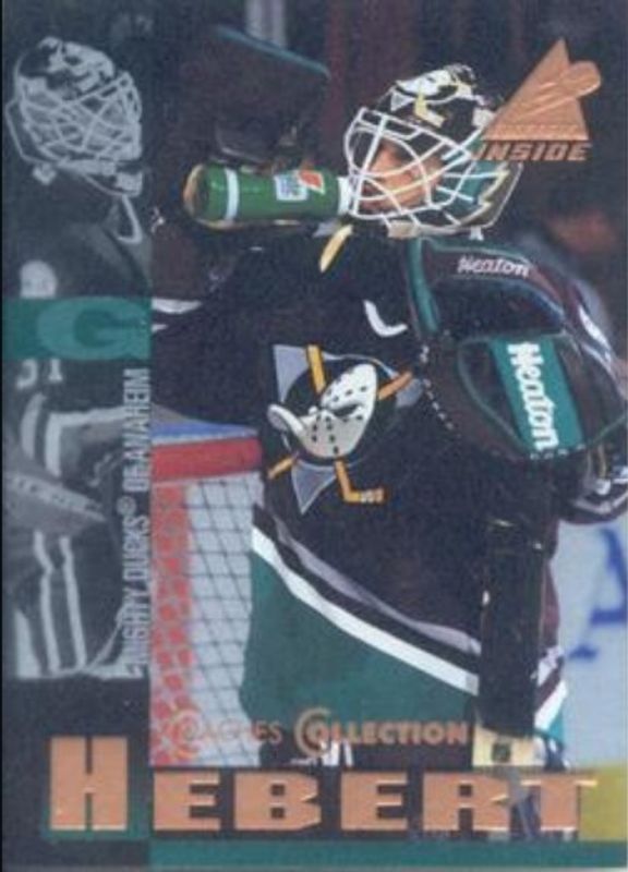 The Guy Hebert 1997 Pinnacle Inside #70 Coaches Collection card is 1 of 9 Guy Hebert's card variations in the 1997 Pinnacle Inside set being tracked by Sports Card Investor, including Base, Executive Collection, Cans, Cans - Gold, and Large Can Goalie.