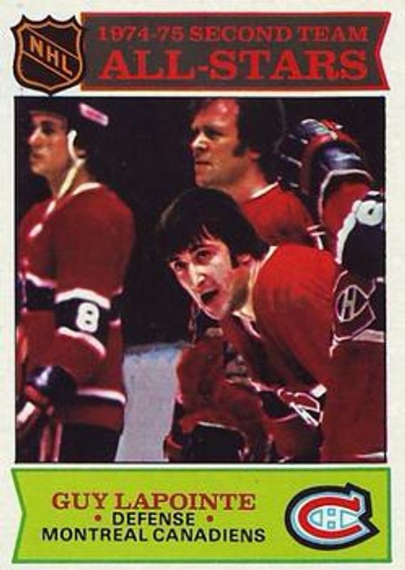 The Guy Lapointe 1975 Topps #293 Base card is 1 of 2 Guy Lapointe's card variations in the 1975 Topps set being tracked by Sports Card Investor, including Base.