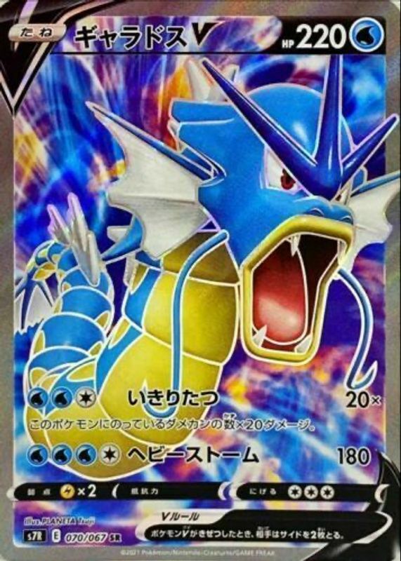 The Gyarados V 2021 Japanese Sword & Shield: Blue Sky Stream #070/067 Super Rare card in Raw TCG (Near Mint) condition has not changed in price in the last 30 days and was last sold for $7.89 .