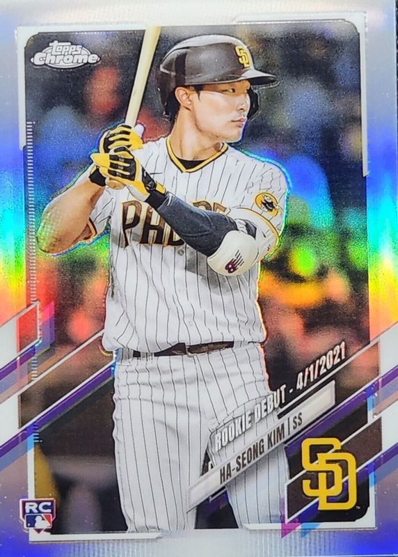 This card is 1 of 10 Ha-Seong Kim's card variations in the 2021 Topps Chrome Update set being tracked by Sports Card Investor, including Rookie Debut, Rookie Debut - Pink Wave Refractor, Rookie Debut - Purple Refractor, Rookie Debut - Blue Refractor /199, and Rookie Debut - X-Fractor /99.