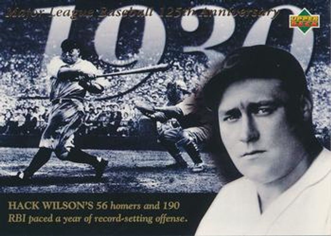 The Hack Wilson 1994 Upper Deck All-Time Heroes #111 125th Anniversary card is 1 of 4 Hack Wilson's card variations in the 1994 Upper Deck All-Time Heroes set being tracked by Sports Card Investor, including #111 Base, #190 Base, and #190 125th Anniversary.