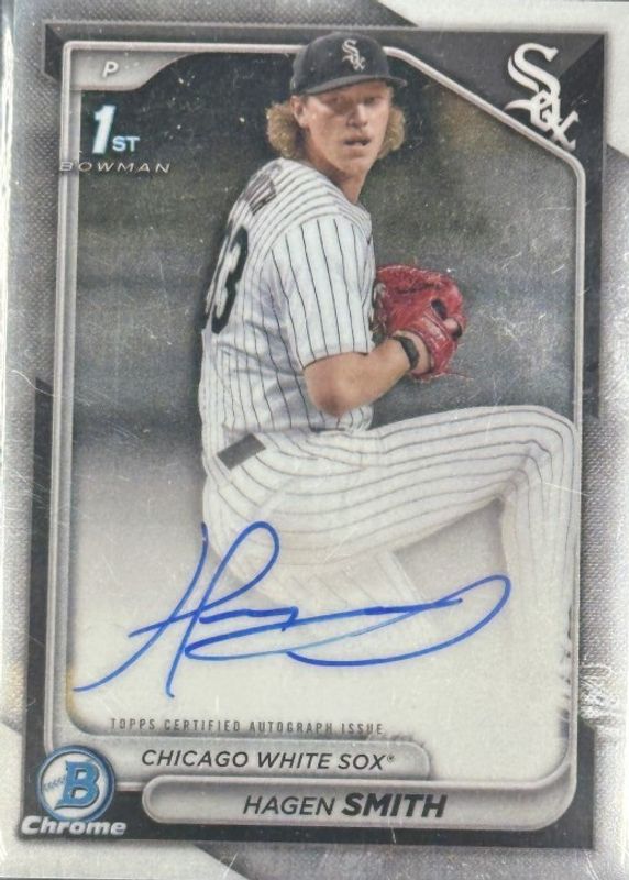 The Hagen Smith 2024 Bowman Draft #CPA-HS Chrome DP Auto (1st) card in Raw condition has moved up $1.49 (+4.4%) in the last 30 days and was last sold for $34.99 .