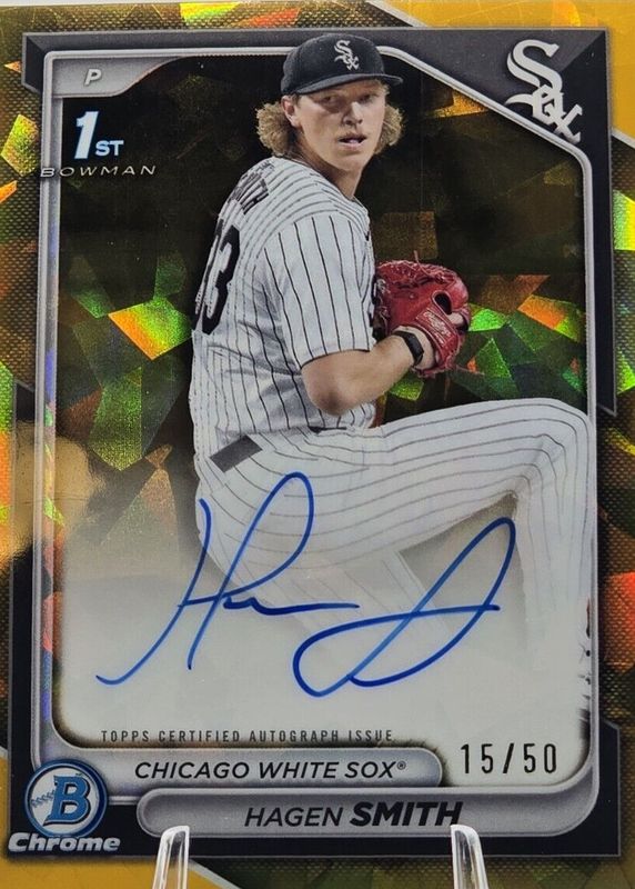 Auctions Ending Soon for Hagen Smith 2024 Bowman Draft Sapphire Edition #CPA-HS Chrome Prospect Auto - Gold /50 (1st) RAW