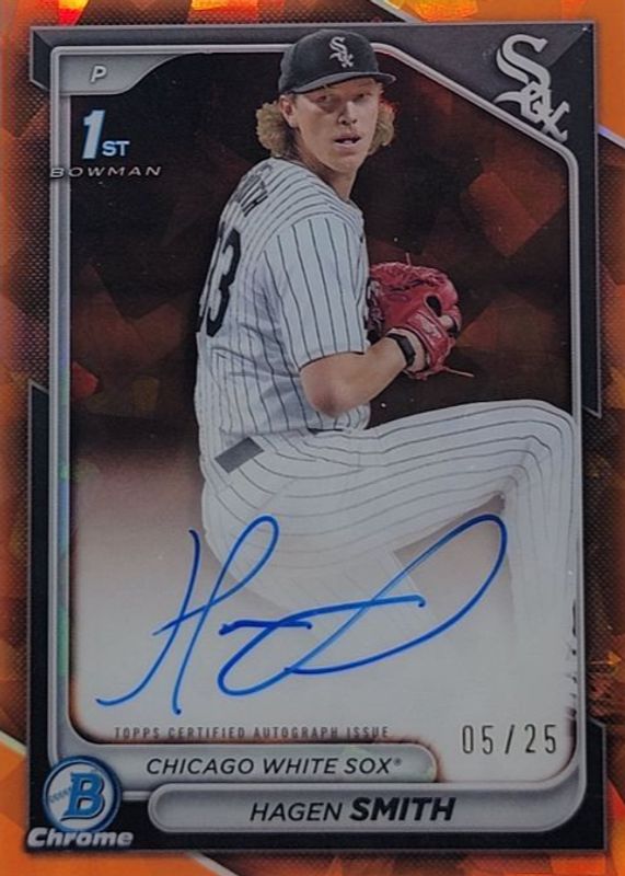 Auctions Ending Soon for Hagen Smith 2024 Bowman Draft Sapphire Edition #CPA-HS Chrome Prospect Auto - Orange /25 (1st) PSA 10