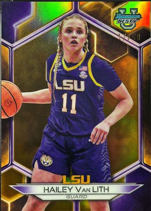 2023-24 Bowman Best University Hailey Van Lith #45 Gold Refractor 16/50 LSU JB2