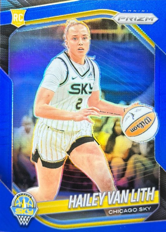 The Hailey Van Lith 2025 Prizm WNBA #2 Blue /199 Rookie card in Raw condition has moved down -$6.00 (-30.8%) in the last 30 days and was last sold for $13.50 .