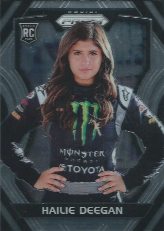 The Hailie Deegan 2018 Prizm NASCAR #30 Base Rookie card in Raw condition has not changed in price in the last 30 days and was last sold for $2.01 .