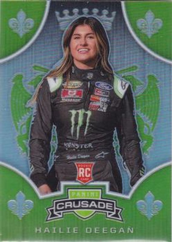 The Hailie Deegan 2020 Chronicles NASCAR #10 Crusade Holo card is 1 of 122 Hailie Deegan's card variations in the 2020 Chronicles NASCAR set being tracked by Sports Card Investor, including Base, Blue /199, Red /99, Purple /25, and Gold /10.