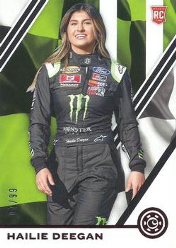 The Hailie Deegan 2020 Chronicles NASCAR #35 Red /99 card is 1 of 122 Hailie Deegan's card variations in the 2020 Chronicles NASCAR set being tracked by Sports Card Investor, including Base, Blue /199, Purple /25, Gold /10, and Black /1.
