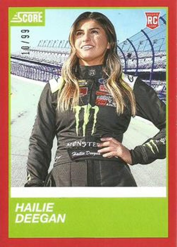 The Hailie Deegan 2020 Chronicles NASCAR #20 Score Red /99 card is 1 of 122 Hailie Deegan's card variations in the 2020 Chronicles NASCAR set being tracked by Sports Card Investor, including Base, Blue /199, Red /99, Purple /25, and Gold /10.