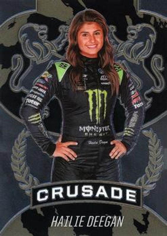 The Hailie Deegan 2021 Chronicles NASCAR #15 Crusade card is 1 of 146 Hailie Deegan's card variations in the 2021 Chronicles NASCAR set being tracked by Sports Card Investor, including Base, Blue /199, Red /99, Purple /25, and Gold /10.