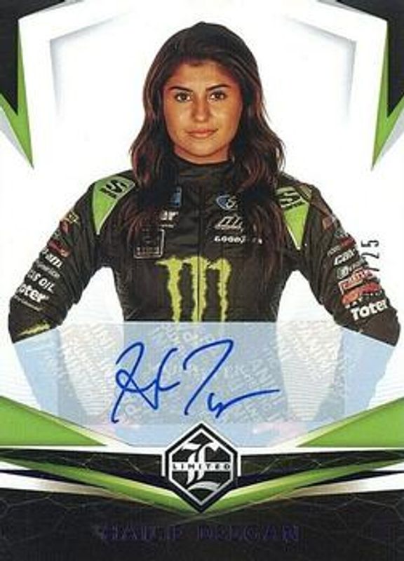 The Hailie Deegan 2021 Chronicles NASCAR #10 Limited Autographs - Purple /25 card is 1 of 146 Hailie Deegan's card variations in the 2021 Chronicles NASCAR set being tracked by Sports Card Investor, including Base, Blue /199, Red /99, Purple /25, and Gold /10.
