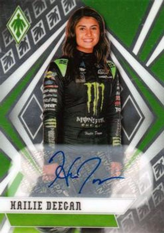 The Hailie Deegan 2021 Chronicles NASCAR #10 Phoenix Autographs card is 1 of 146 Hailie Deegan's card variations in the 2021 Chronicles NASCAR set being tracked by Sports Card Investor, including Base, Blue /199, Red /99, Purple /25, and Gold /10.