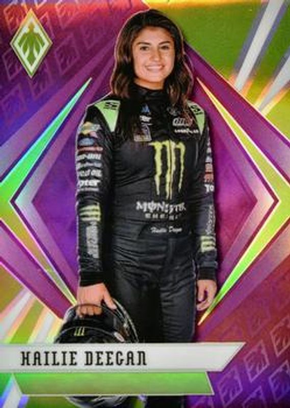 The Hailie Deegan 2021 Chronicles NASCAR #10 Phoenix - Purple /25 card is 1 of 146 Hailie Deegan's card variations in the 2021 Chronicles NASCAR set being tracked by Sports Card Investor, including Base, Blue /199, Red /99, Purple /25, and Gold /10.