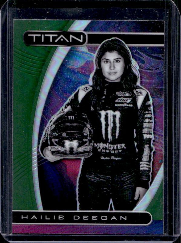 The Hailie Deegan 2021 Chronicles NASCAR #16 Titan - Green card is 1 of 146 Hailie Deegan's card variations in the 2021 Chronicles NASCAR set being tracked by Sports Card Investor, including Base, Blue /199, Red /99, Purple /25, and Gold /10.