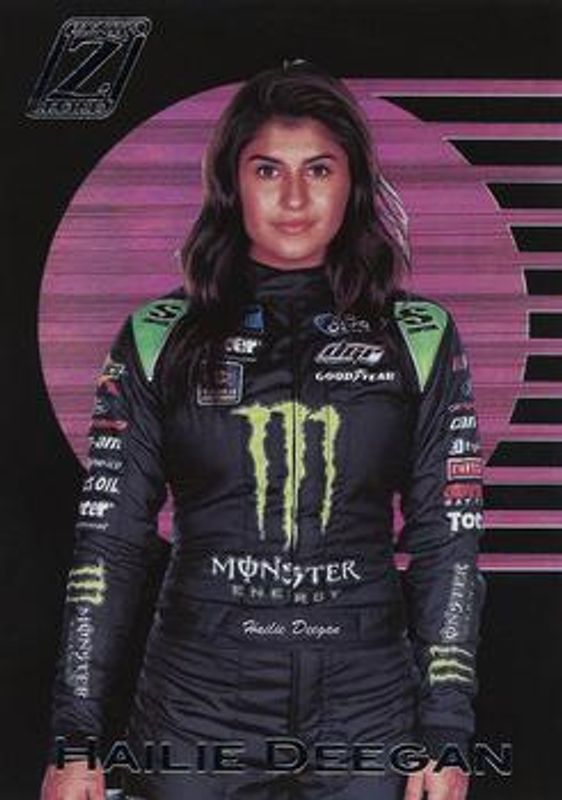The Hailie Deegan 2021 Chronicles NASCAR #20 Zenith card is 1 of 146 Hailie Deegan's card variations in the 2021 Chronicles NASCAR set being tracked by Sports Card Investor, including Base, Blue /199, Red /99, Purple /25, and Gold /10.