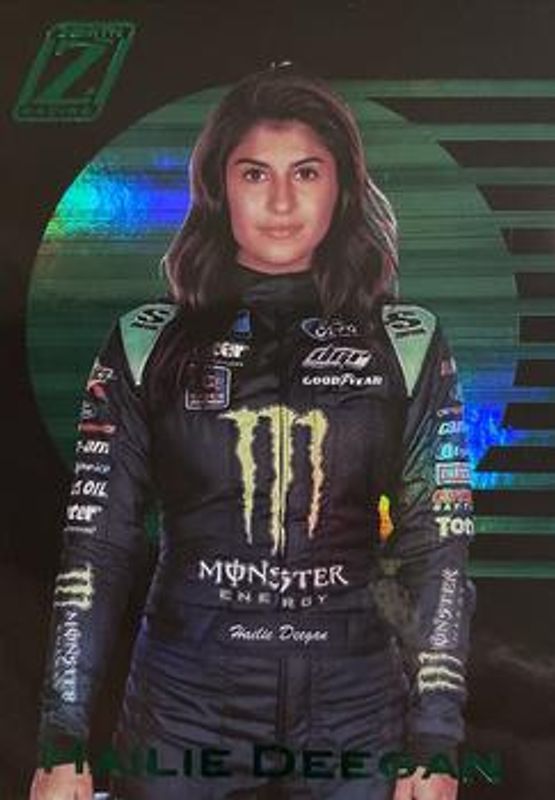 The Hailie Deegan 2021 Chronicles NASCAR #20 Zenith - Green card is 1 of 146 Hailie Deegan's card variations in the 2021 Chronicles NASCAR set being tracked by Sports Card Investor, including Base, Blue /199, Red /99, Purple /25, and Gold /10.