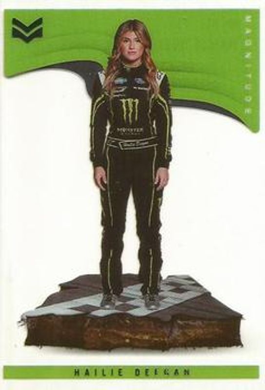 The Hailie Deegan 2022 Chronicles NASCAR #31 Magnitude card is 1 of 149 Hailie Deegan's card variations in the 2022 Chronicles NASCAR set being tracked by Sports Card Investor, including Absolute, Absolute Autographs, Black, Black Autographs, and Black Green.