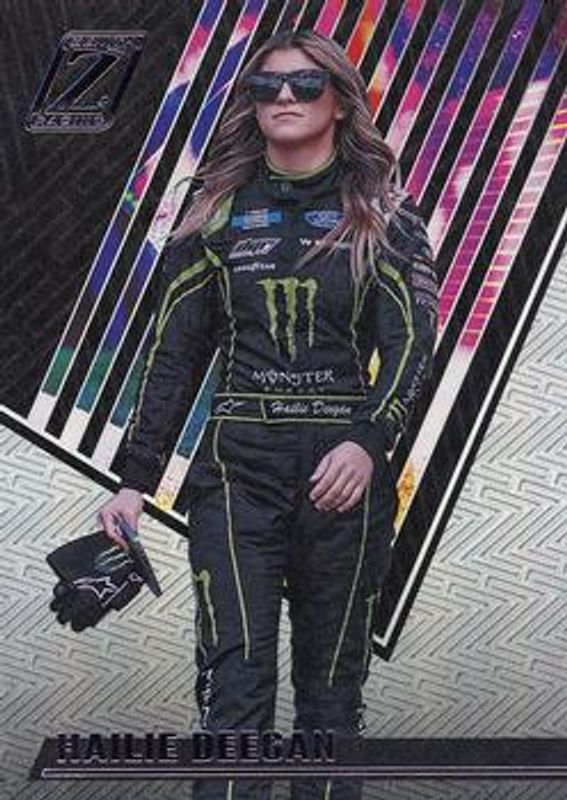 The Hailie Deegan 2022 Chronicles NASCAR #11 Zenith card is 1 of 149 Hailie Deegan's card variations in the 2022 Chronicles NASCAR set being tracked by Sports Card Investor, including Absolute, Absolute Autographs, Black, Black Autographs, and Black Green.