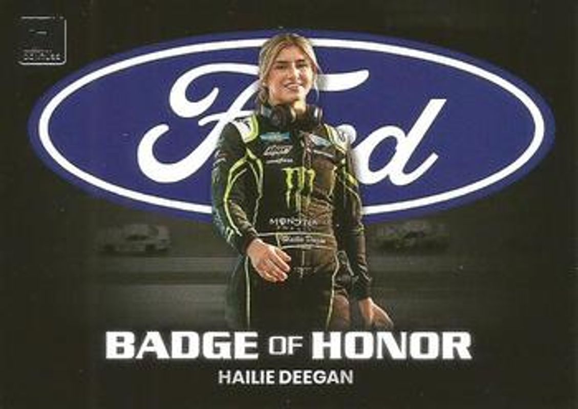 The Hailie Deegan 2023 Donruss NASCAR #BH-HD Badge of Honor card is 1 of 90 Hailie Deegan's card variations in the 2023 Donruss NASCAR set being tracked by Sports Card Investor, including #167 Base, #24 Base, #82 Base, #167 Carolina Blue, and #82 Carolina Blue.