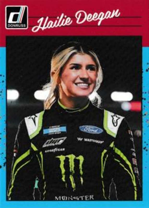 The Hailie Deegan 2023 Donruss NASCAR #167 Carolina Blue card is 1 of 90 Hailie Deegan's card variations in the 2023 Donruss NASCAR set being tracked by Sports Card Investor, including #167 Base, #24 Base, #82 Base, #82 Carolina Blue, and #24 Carolina Blue.