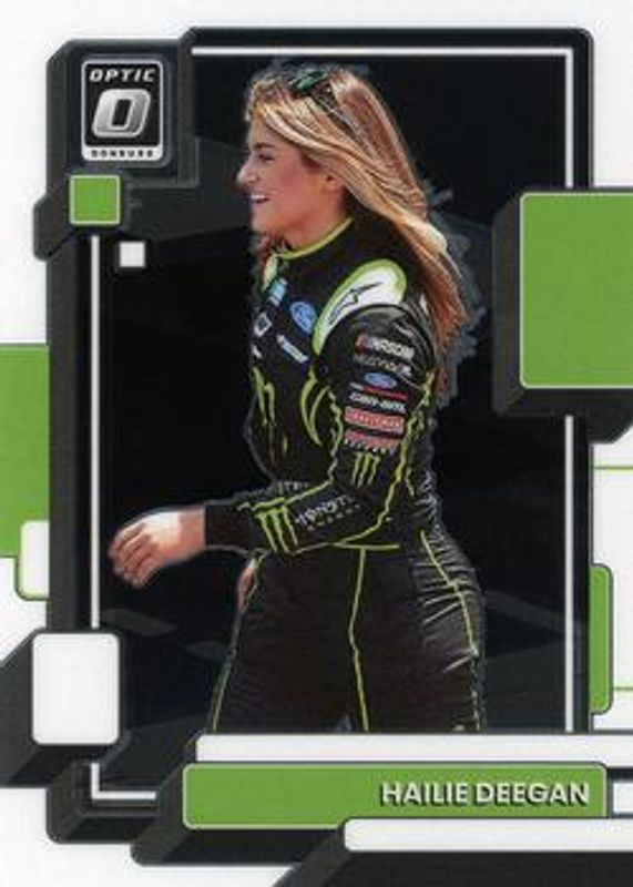The Hailie Deegan 2023 Donruss NASCAR #30 Optic card is 1 of 90 Hailie Deegan's card variations in the 2023 Donruss NASCAR set being tracked by Sports Card Investor, including #167 Base, #24 Base, #82 Base, #167 Carolina Blue, and #82 Carolina Blue.