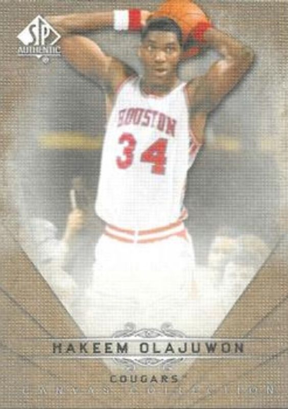 The Hakeem Olajuwon 2012 SP Authentic #CC-7 Canvas Collection Gold card is 1 of 13 Hakeem Olajuwon's card variations in the 2012 SP Authentic set being tracked by Sports Card Investor, including #59 Base, #6 Base, #6 Autographs, #CC-7 Canvas Collection, and #CC-7 Canvas Collection Autographs.