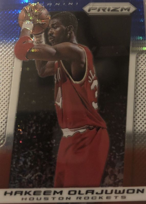 Hakeem Olajuwon 2013-14 Prizm Red White Blue Pulsar #82 Houston Rockets HOF