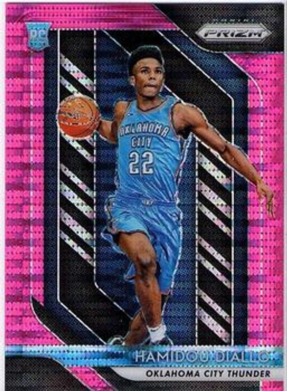 The Hamidou Diallo 2018 Prizm #9 Pink Pulsar /42 Rookie card is 1 of 52 Hamidou Diallo's card variations in the 2018 Prizm set being tracked by Sports Card Investor, including Base, Choice Blue Yellow Green, Fast Break, Green, and Hyper.