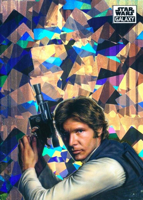 This card is 1 of 9 Han Solo's card variations in the 2021 Topps Chrome Star Wars Galaxy set being tracked by Sports Card Investor, including Refractor, Wave Refractor /99, Prism Refractor /75, Mojo Refractor /50, and Purple Refractor /25.