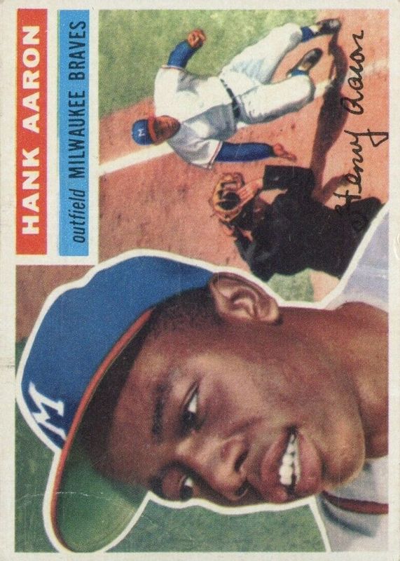 This card is 1 of 4 Hank Aaron's card variations in the 1956 Topps set being tracked by Sports Card Investor, including #31a Base, #31b Base, and #31 Gray Back.