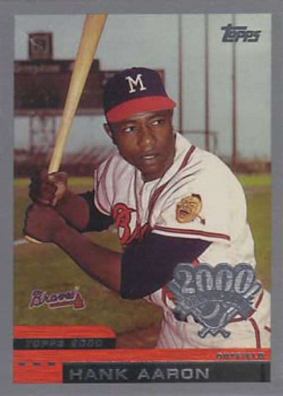 The Hank Aaron 2000 Topps Opening Day #22 Base card is 1 of 3 Hank Aaron's card variations in the 2000 Topps Opening Day set being tracked by Sports Card Investor, including #106 Base, and #110 Base.