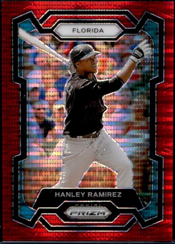 The Hanley Ramirez 2024 Prizm #66 Red Pulsar /399 card is 1 of 30 Hanley Ramirez's card variations in the 2024 Prizm set being tracked by Sports Card Investor, including Base, Blue Ice, Green, Green Ice, and Pink Ice.
