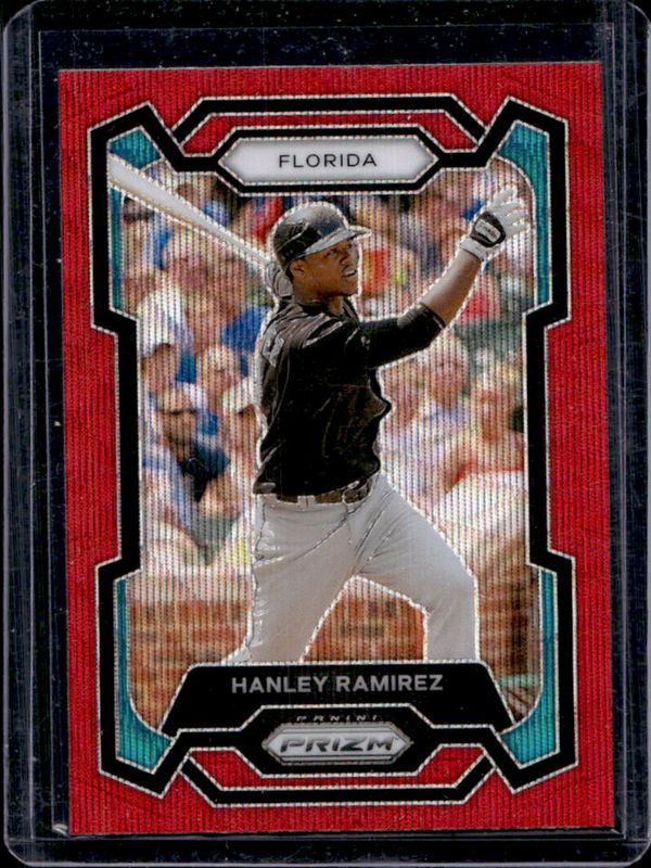 The Hanley Ramirez 2024 Prizm #66 Ruby Wave card is 1 of 30 Hanley Ramirez's card variations in the 2024 Prizm set being tracked by Sports Card Investor, including Base, Blue Ice, Green, Green Ice, and Pink Ice.