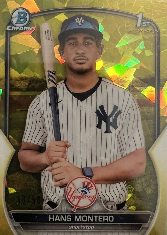 This card is 1 of 7 Hans Montero's card variations in the 2023 Bowman Chrome Sapphire Edition set being tracked by Sports Card Investor, including Prospects (1st), Prospects - Aqua /99 (1st), Prospects - Orange /75 (1st), Prospects - Purple /25 (1st), and Prospects - Red /5 (1st).