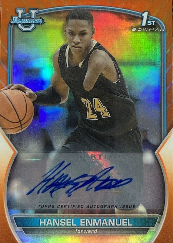 Hansel Enmanuel 2022 Bowman Chrome University #52 Prospect Autographs - Orange Refractor /25 (1st) RAW Price Guide
