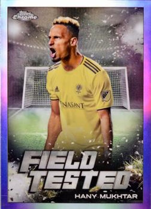 The Hany Mukhtar 2022 Topps Chrome MLS #FT-6 Field Tested card is 1 of 34 Hany Mukhtar's card variations in the 2022 Topps Chrome MLS set being tracked by Sports Card Investor, including Base, Pink X Fractor, Refractor, Speckle, and Aqua /299.
