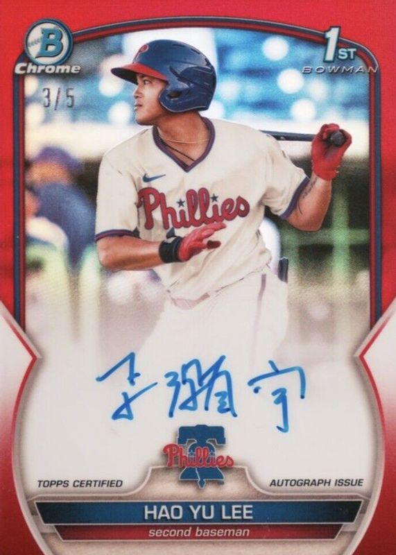 Hao Yu Lee 2023 Bowman #CPA-HL Chrome Prospect Auto - Red Refractor /5 (1st) RAW Price Guide