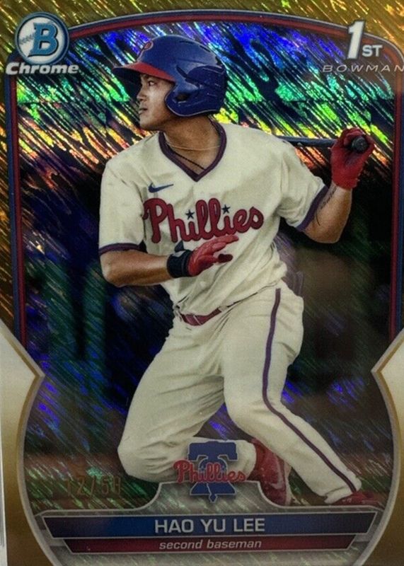 Auctions Ending Soon for Hao Yu Lee 2023 Bowman #BCP-52 Chrome Prospects - Gold Shimmer Refractor /50 (1st) RAW