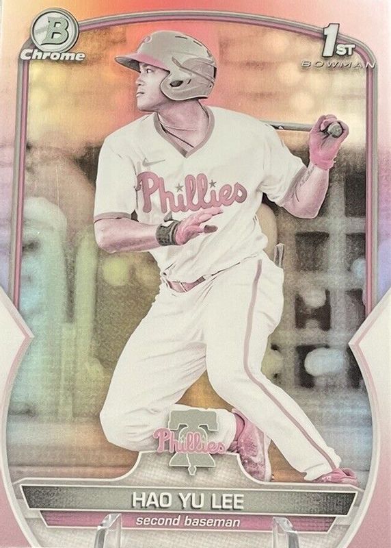 The Hao Yu Lee 2023 Bowman #BCP-52 Chrome Prospects - Pearl Refractor (1st) card in Raw condition has not changed in price in the last 30 days and was last sold for $68.00 .