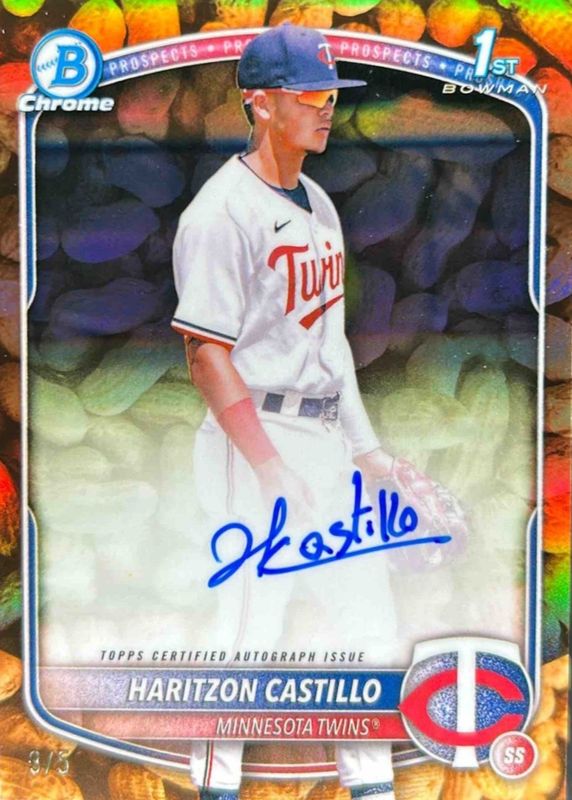 Haritzon Castillo 2025 Bowman Chrome #CPA-HC Prospect Auto - Peanuts Refractor /5 (1st) RAW Price Guide