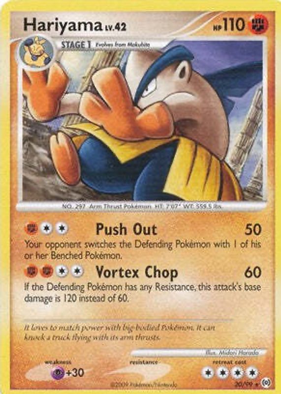 The Hariyama 2009 Platinum: Arceus #20/99 Base card in Raw TCG (Lightly Played) condition has not changed in price in the last 30 days and was last sold for $2.50 .