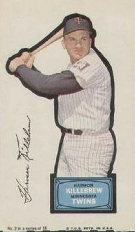 The Harmon Killebrew 1968 Action All-Star Stickers #2 Base card is 1 of 2 Harmon Killebrew's card variations in the 1968 Action All-Star Stickers set being tracked by Sports Card Investor, including Base.