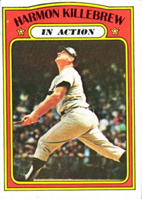 The Harmon Killebrew 1972 Topps #52 Base card is 1 of 3 Harmon Killebrew's card variations in the 1972 Topps set being tracked by Sports Card Investor, including Base, and In Action.