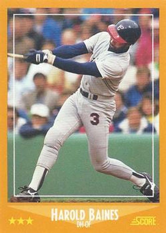 The Harold Baines 1988 Score #590 Base card is 1 of 2 Harold Baines' card variations in the 1988 Score set being tracked by Sports Card Investor, including Glossy.