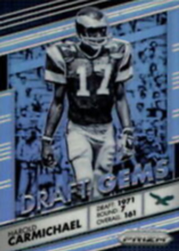 This card is 1 of 4 Harold Carmichael's card variations in the 2016 Prizm set being tracked by Sports Card Investor, including Draft Gems - Green, Draft Gems - Gold Mojo /10, and Draft Gems - Black Finite /1.