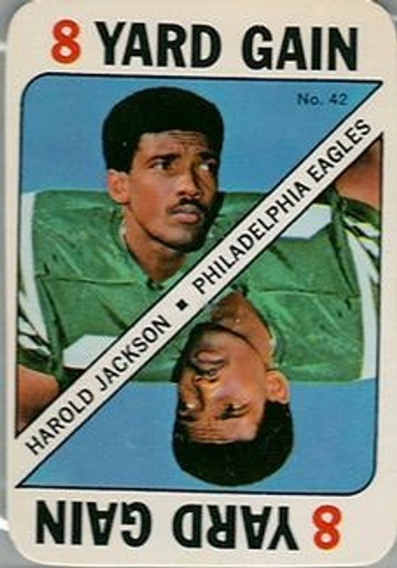 The Harold Jackson 1971 Topps #42 Game Inserts card is 1 of 4 Harold Jackson's card variations in the 1971 Topps set being tracked by Sports Card Investor, including Base, Posters, and Posters - Glossy.