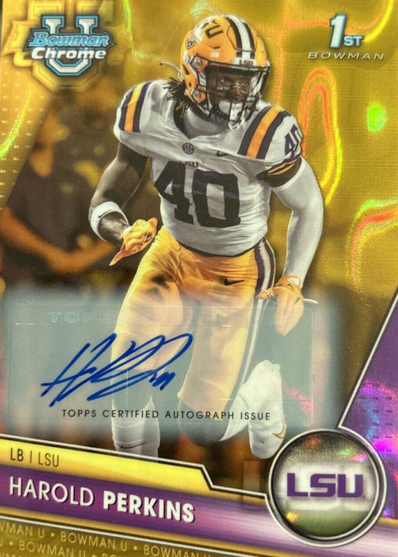 Harold Perkins Jr. 2023 Bowman Chrome University #41 Prospect Auto - Gold Lava Refractor /50 (1st) RAW Price Guide